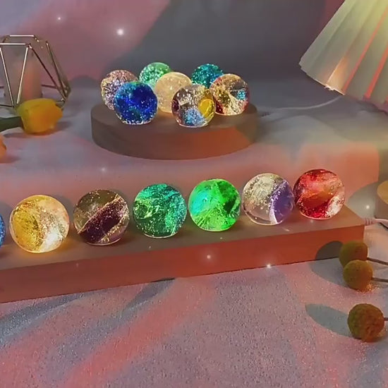 Imagine drifting off to sleep under a canopy of shimmering stars… This Crystal Glass Night Light isn’t just a lamp—it’s an enchanting experience! The hand-blown glass orb disperses light into a celestial display, while the LED base cycles through 7 soft colors to create a hypnotic, calming atmosphere.