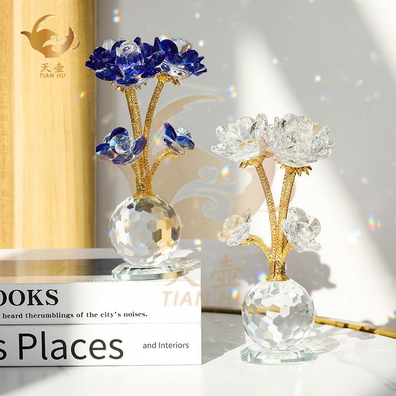 Crystal Pink Rose Decor - Nordic Luxury Living Room Ornament, Birthday Gift